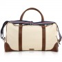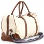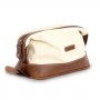 - المواد: قطن بلون الكريم مع جلد صناعي بني