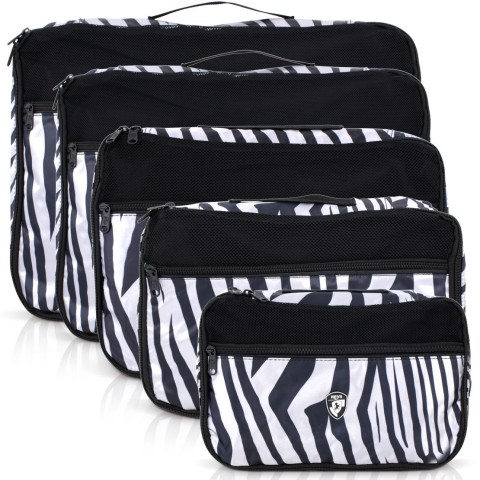 The Exotic 5-Piece Packing Cube Set keeps you organized in style while saving space at the same time. With packing cubes you have a virtual closet within your luggage, you can quickly find your item and everything still stays nice and neat. You can pack and unpack in just few seconds and also keep your clothes clean by preventing them from the –unhygienic- hotel cabinets and closets.