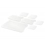 - Seven plastic storage lids; not microwave safe