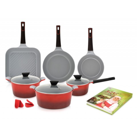 يحتوي طقم أواني الطهي 10 قطع من منال العالم على:
