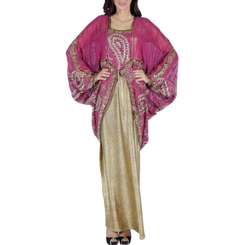 - جزيلا- جلابية كوت أزور باللون الفوشيا والذهبي