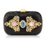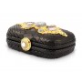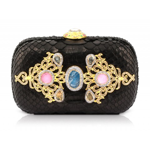 بمزيج من الأصالة والجمال تقدم لك دار جوزيل حقيبة زينات السوداء المستوحاة من التراث والفن العثماني. مصنوعة يدوياً من جلد الثعبان الطبيعي ومرصعة بالأحجار الكريمة العريقة مثل حجر الكوارتز الأزرق، 2 حجر الكوارتز الوردي، 4 حجر العقيق البني وكريستال الشواروفسكي لتضفي عليك لمسة من لأناقة والجمال.
