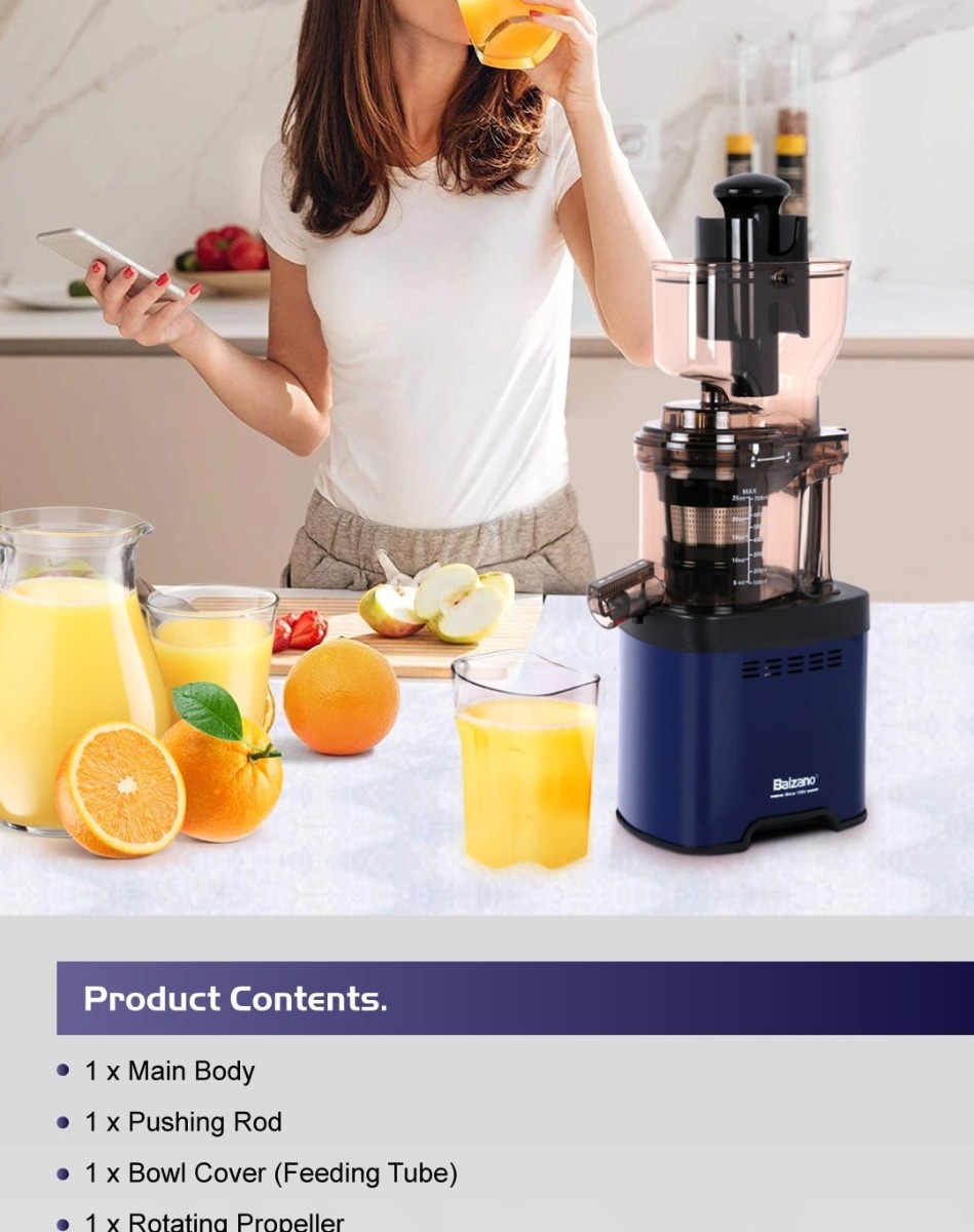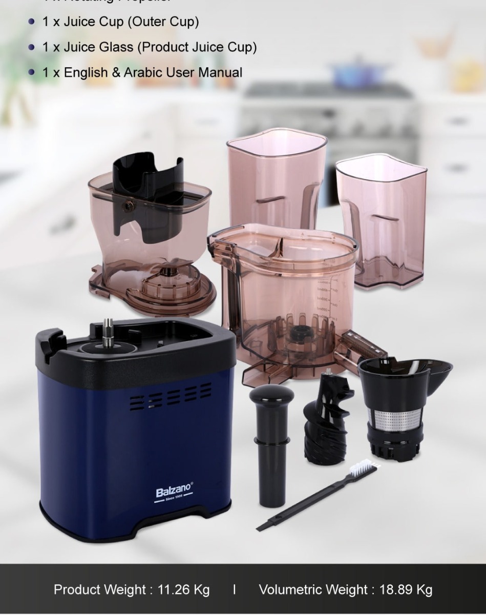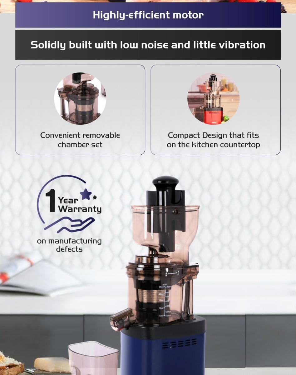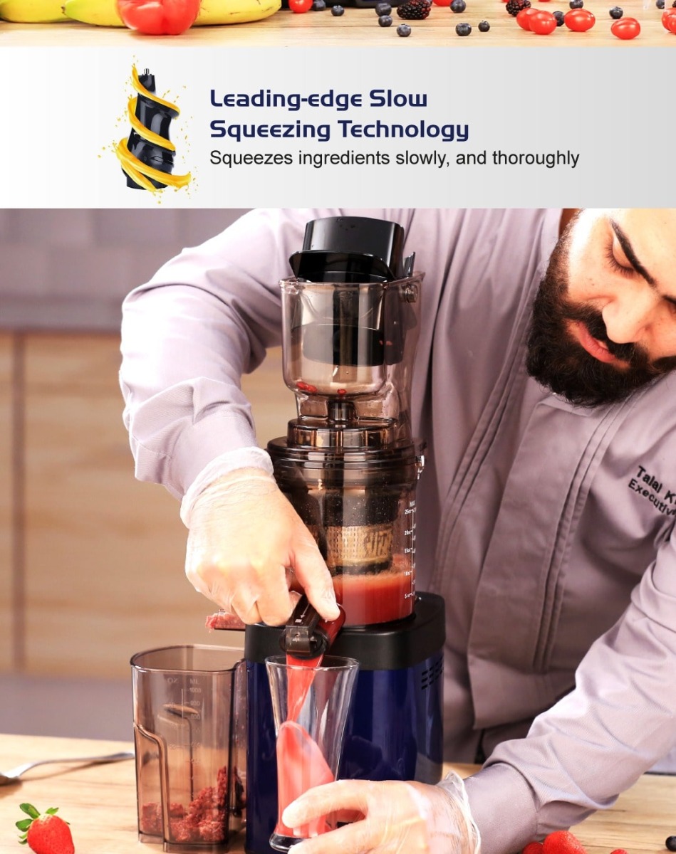 عصارة بطيئة بفوهة كاملة JE20 أزرق مع محضرة شوربه و طقم سكاكين هدية