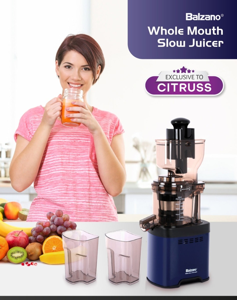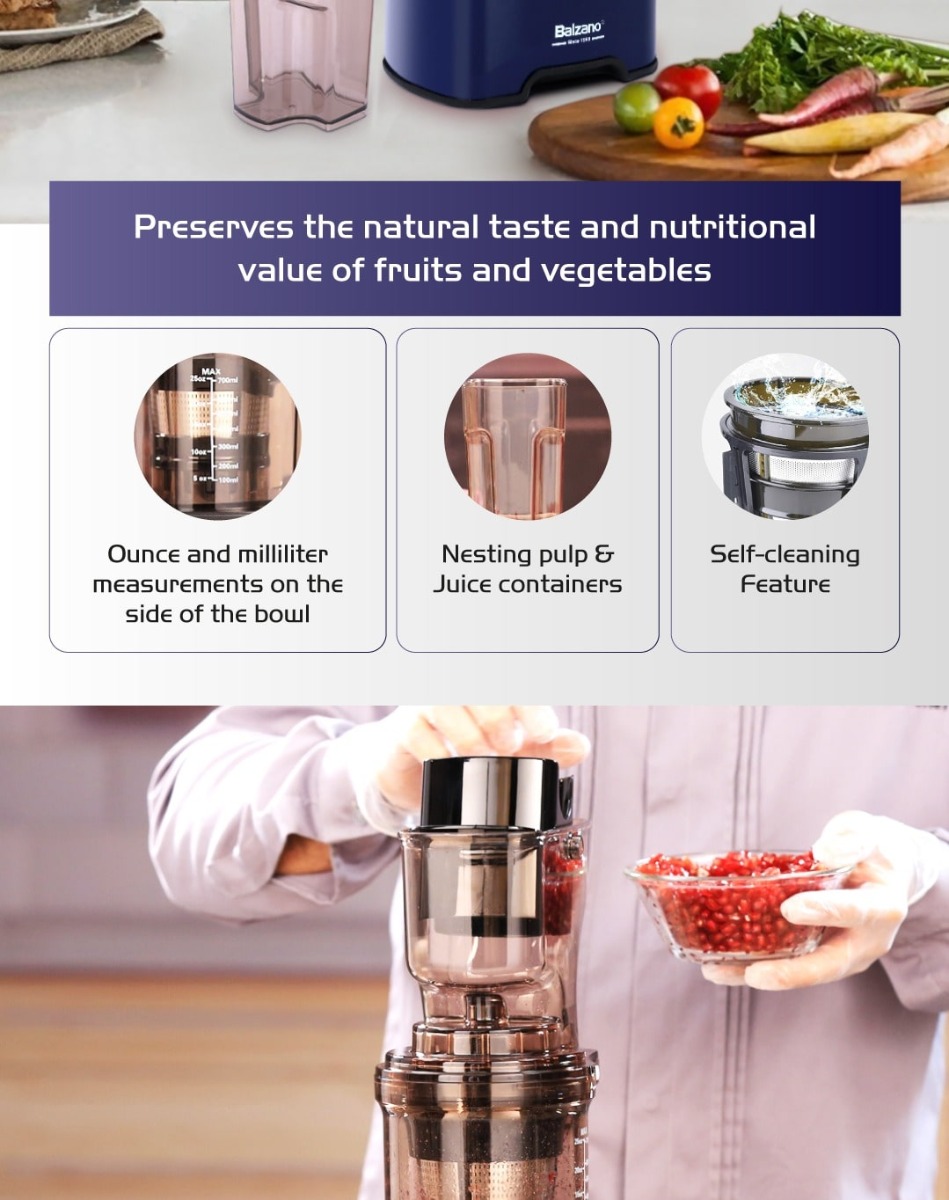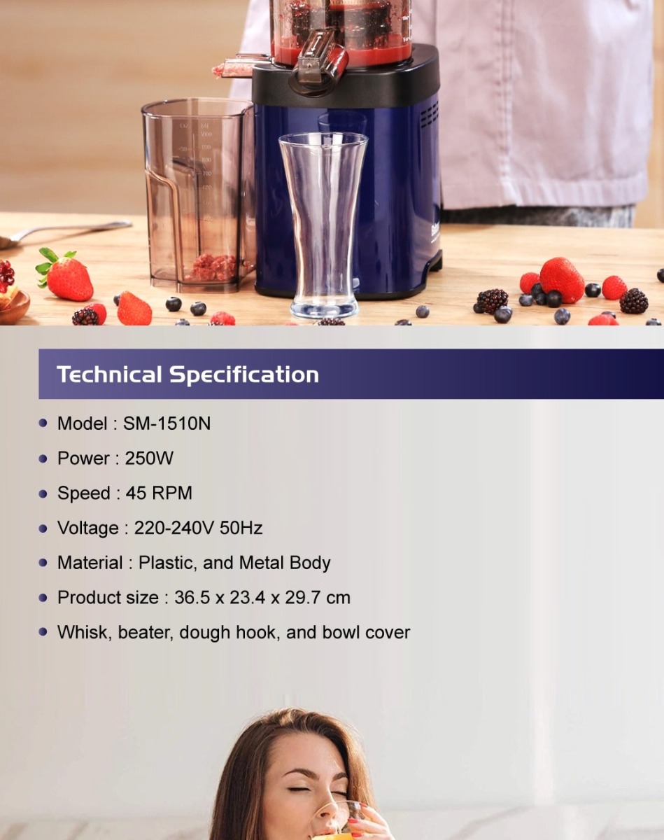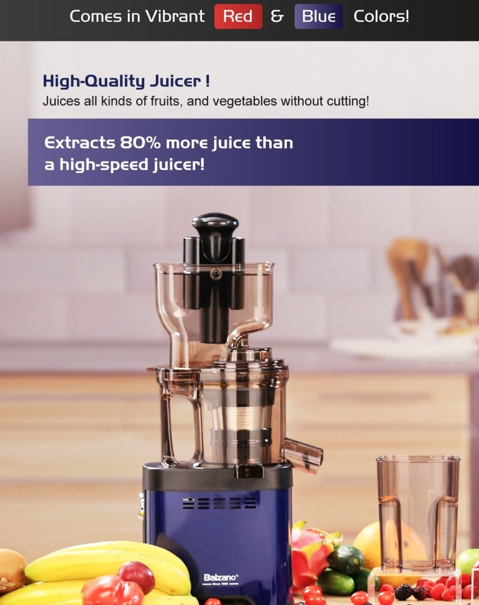 عصارة بطيئة بفوهة كاملة JE20 أزرق مع محضرة شوربه و طقم سكاكين هدية