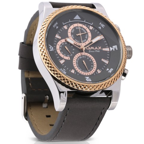 - مينا الساعة: متعدد الوظائف بلون رمادي مع 3 أوجه داخلية لليوم، التاريخ والثواني
