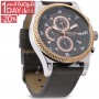 عصرية وأنيقة تتميز بثلاث أوجه داخلية لإظهار اليوم، التاريخ والثواني. ما يميّز سوار الساعة هو كونه مصنوع من جلد رمادي أصلي يجعل ارتداء الساعة أمر مريح ولطيف على يدك. زجاج الساعة هو من كريستال الياقوت المقاوم للخدش فلا داعي للقلق من أن تتأذى أو تنخدش ساعتك. لهذه الساعة حركة "سيكو كوارتز" وذلك يعني أنها صُنعت لتدوم، كما ستساعدك هذه الحركة على تعديل الساعة واستبدال أجزائها الميكانيكية بسهولة.