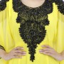 إحصلي على جلابية شمس الرائعة من دار زهرة للأزياء وتباهي أمام صديقاتك هذا الخميس. هذه الجلابية الصفراء تتميز عن باقي الجلابيات بالخرز السوداء المختارة بعناية مع الأحجار المصممة على شكل دمعة الموضوعة على الجهاة الأمامية، الأكمام والرقبة المصممة على شكل حرف “U”. كما أن قياس الجلابية هو قياس حُر، فتستطيع أية فتاة لبسه دون قلق كونه مصنوع من الشيفون ومبطّن بالساتان من الداخل مع حزام حول الخصر.